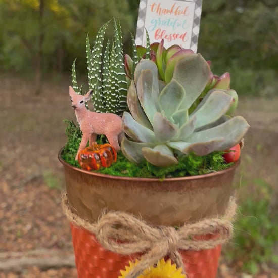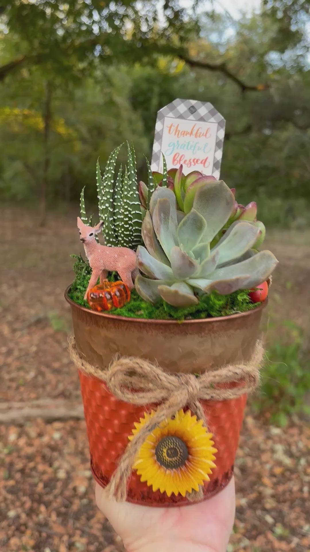 Meausres 5x7 and includes a Fall tag, fall decor and baby deer mini figure.