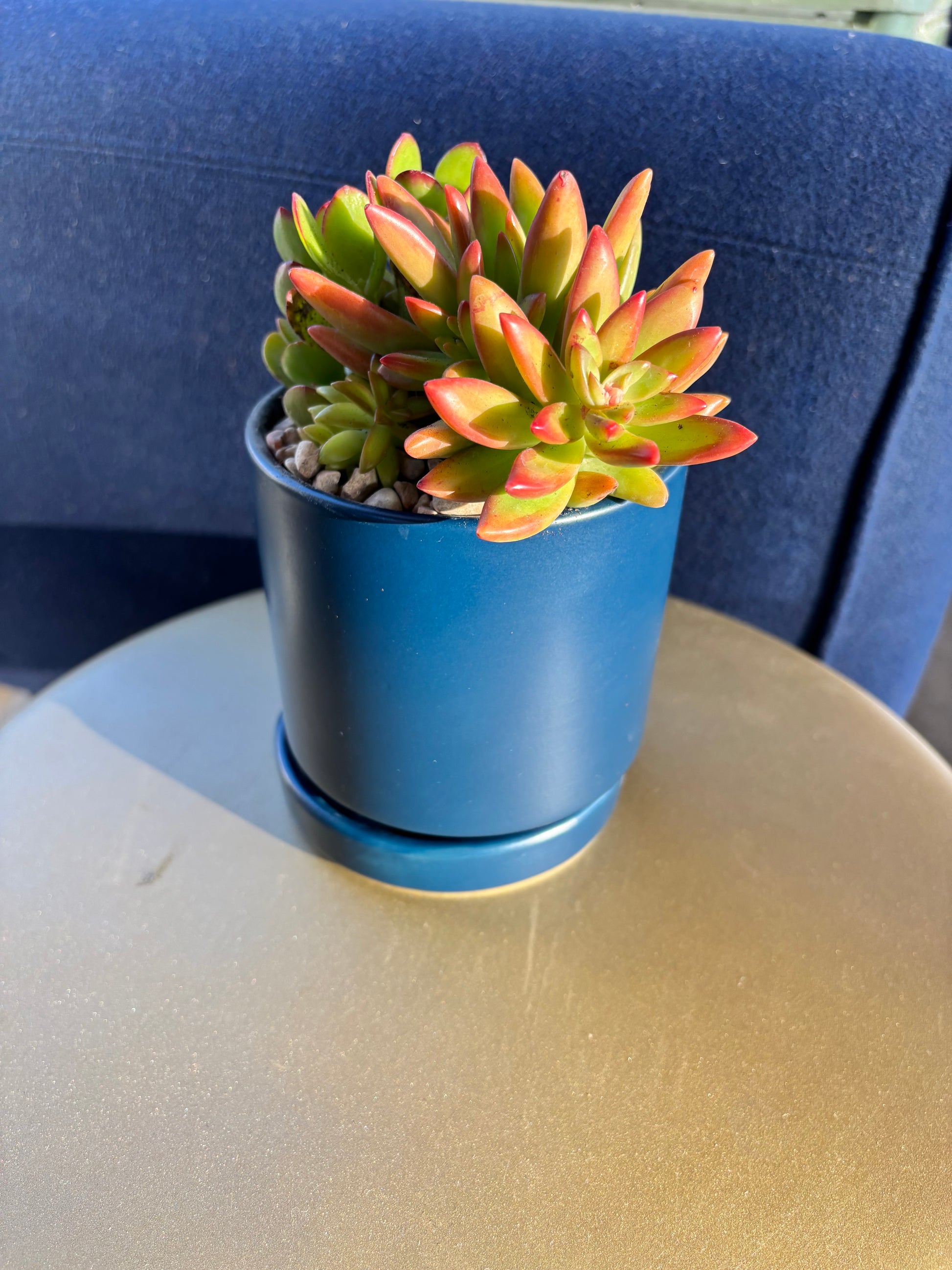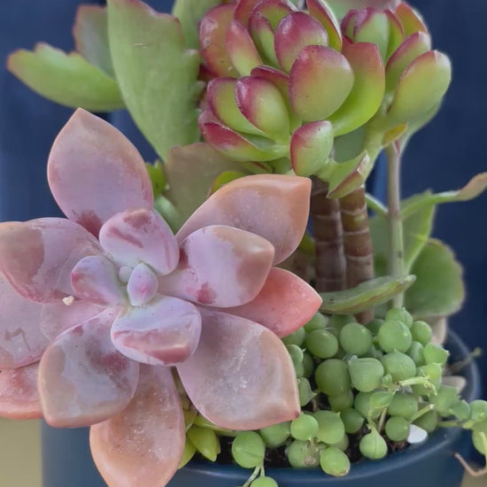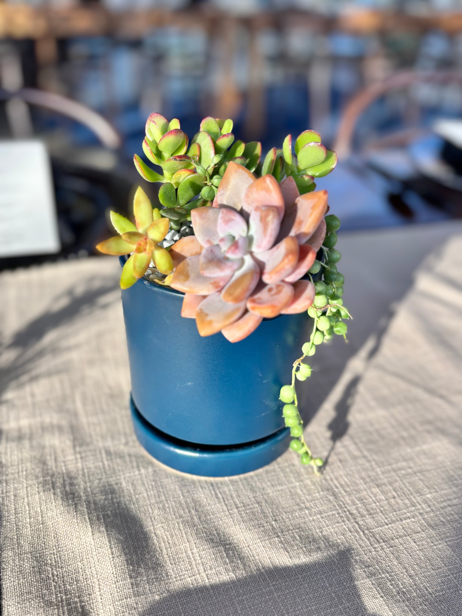 Meet your new favorite mini garden — a stunning indigo blue gemstone pot, handcrafted by a talented woman-owned pottery studio, and filled to the brim with personality. Inside you’ll find a curated mix of succulents, cacti, and/or air plants arranged to perfection… and ready to brighten up any desk, windowsill, or gift bag.