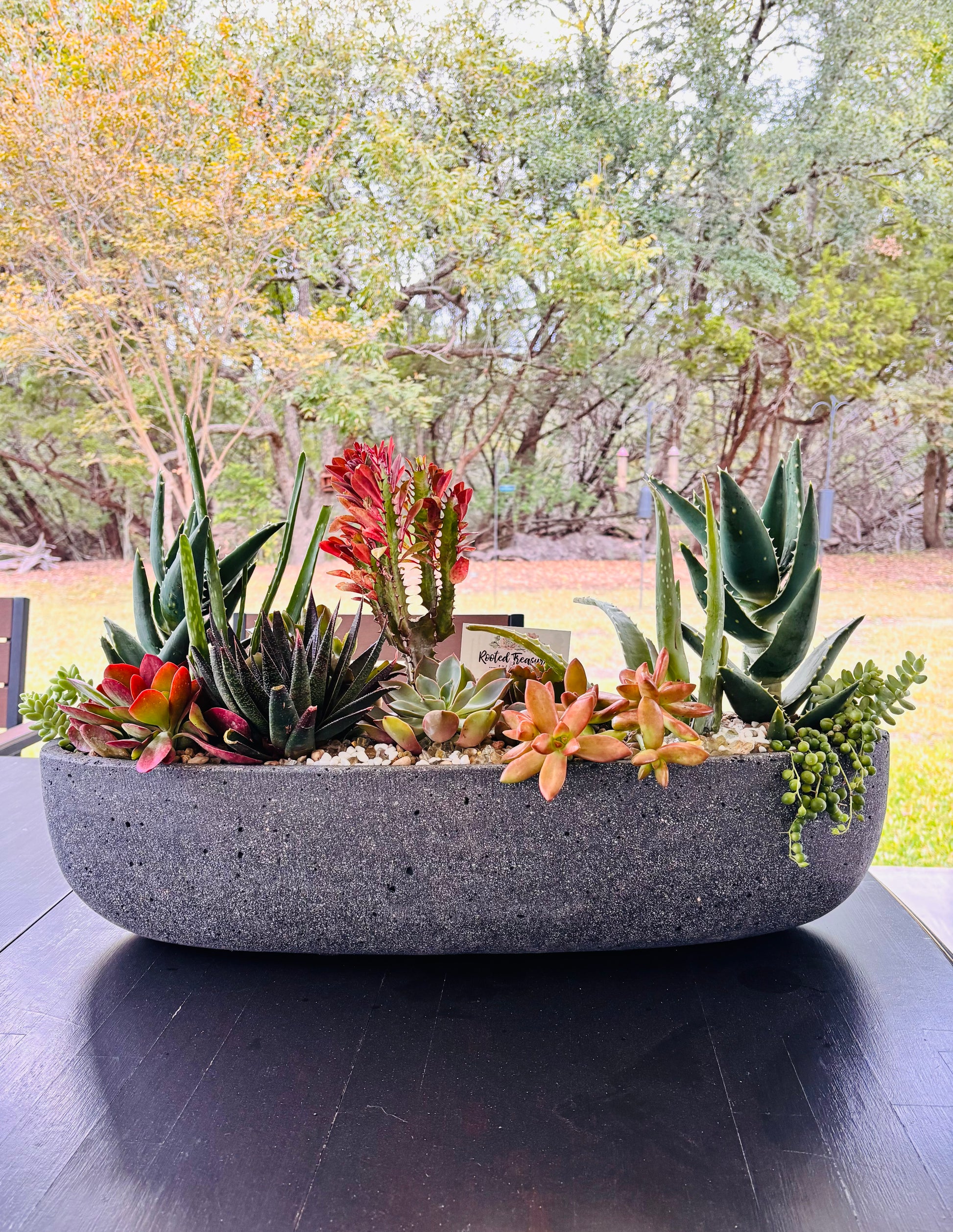 Please note succulents may vary based on season and availability, but will be healthy, beautiful and hand chosen by our designers to create this stunning centerpiece.